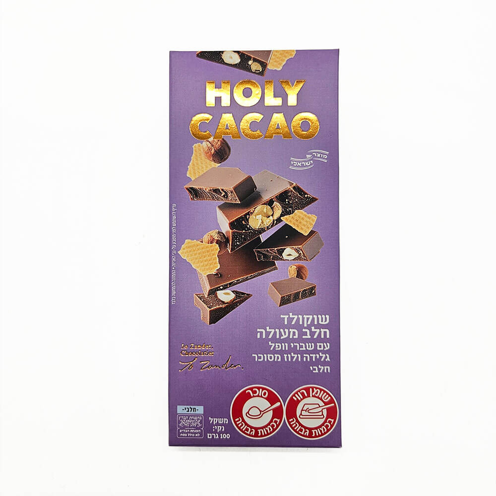 פרטים חשובים על שוקולד חלב מעולה וופל גלידה ולוז מסוכר מבית Holy Cacao:
