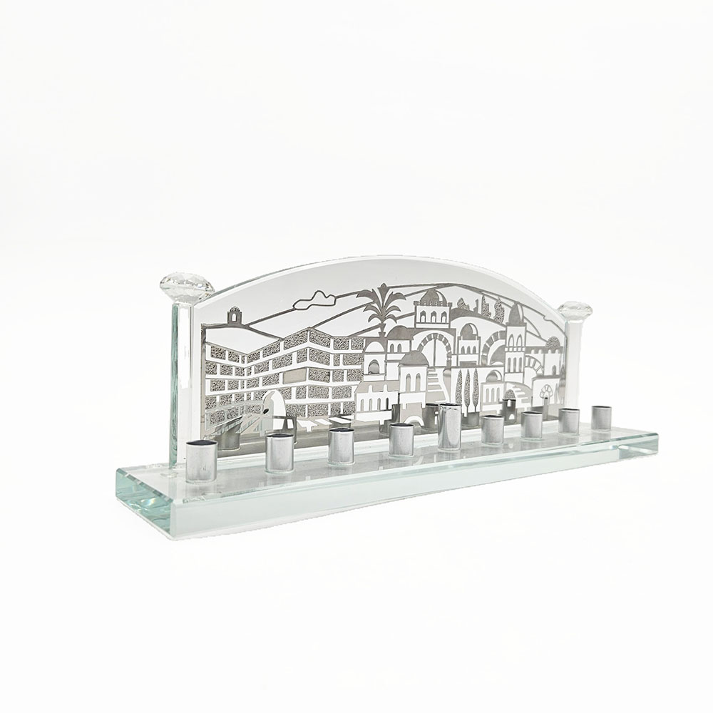 חנוכיית קריסטל עיצוב ירושלים יוקרתית ויפה לחג החנוכה.