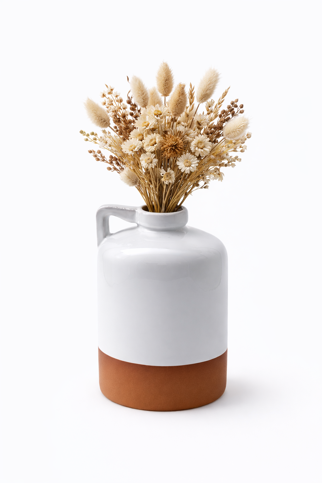 כד קרמיקה דקורטיבי בעיצוב נקי עם ידית צד. מתאים לפרחים יבשים, ענפים דקורטיביים או כפריט נוי לעיצוב הבית.