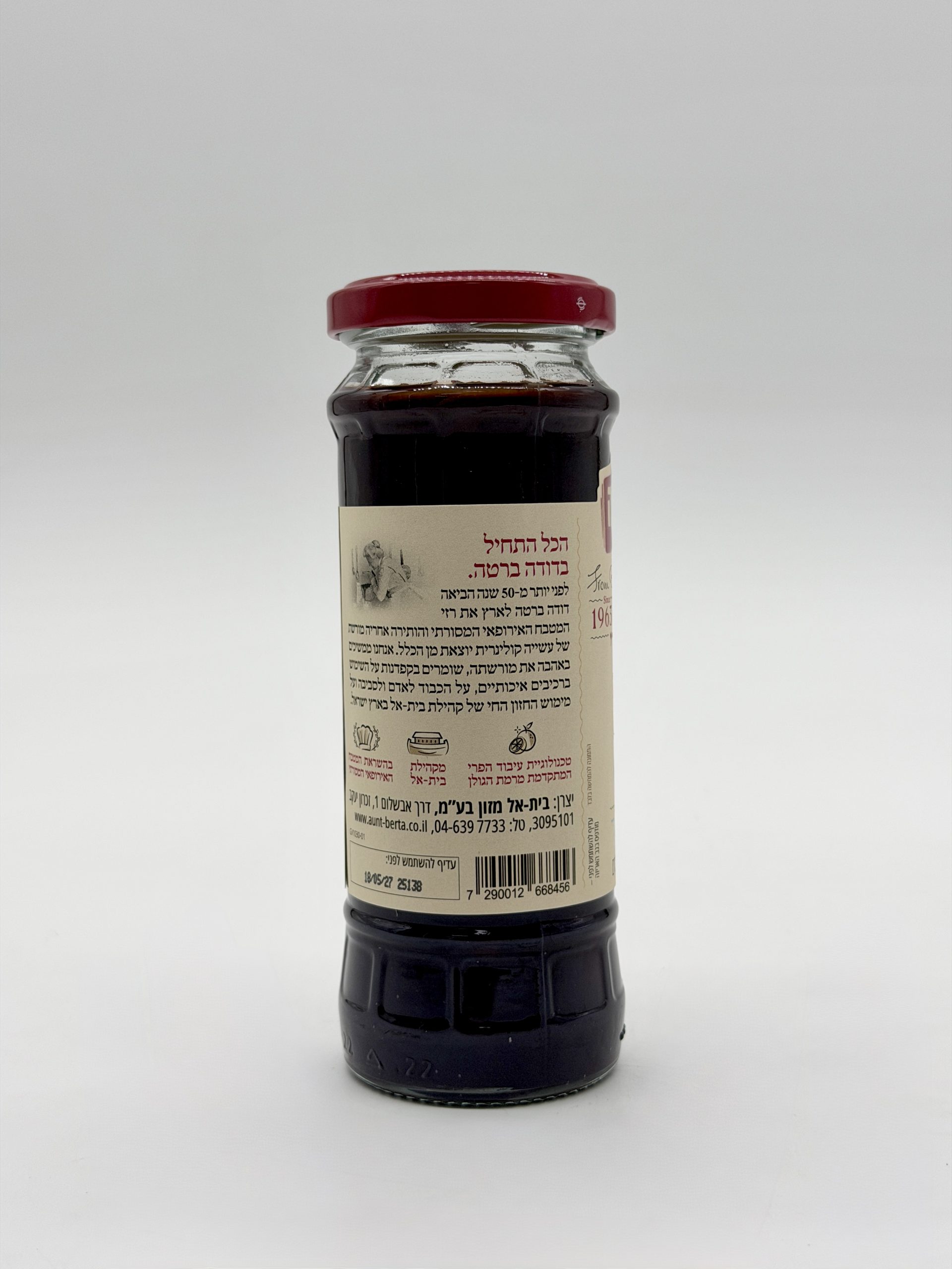 מעדן פרי דובדבן מבית דודה ברטה, בעל טעם עמוק ופירותי ומרקם חלק ונעים.